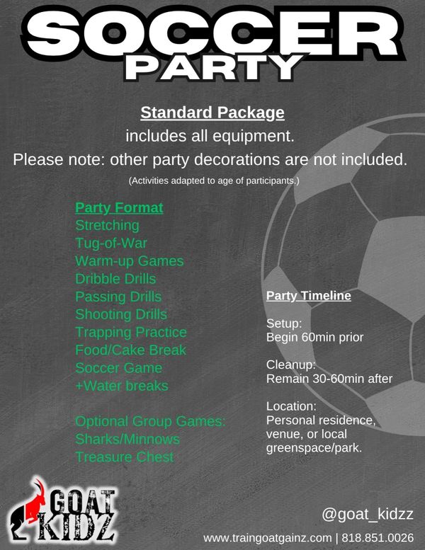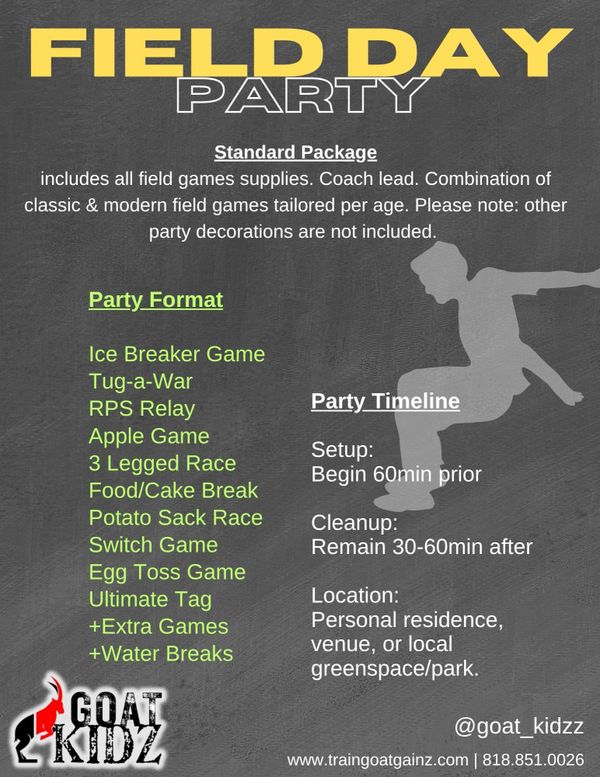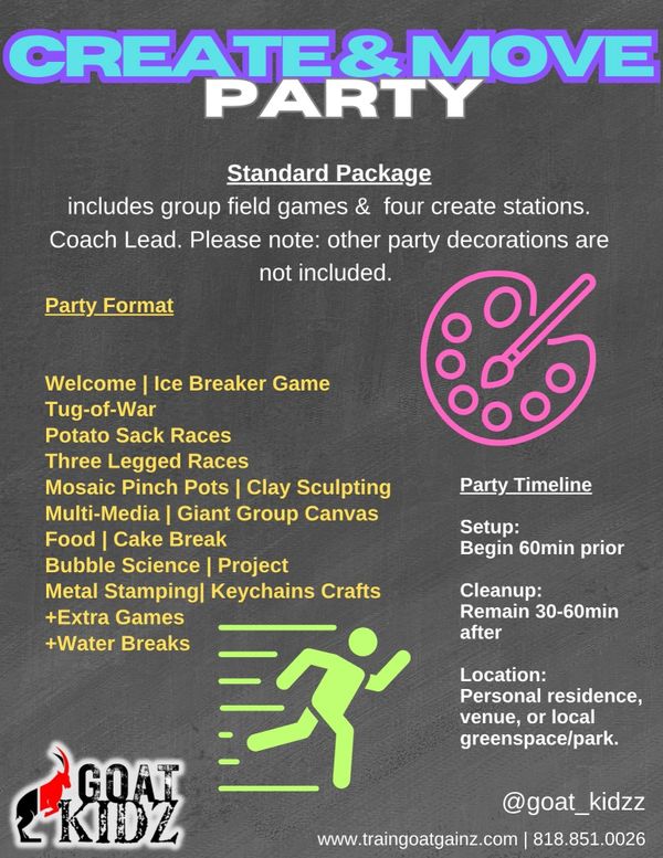 Chalk bombs are a favored way to kick-start the party! Our coaches will lead kids in an ice breaker game, that is sure to bring the kids together in laughter and smiles! The goal: to stay clean! Chalk bombs are non-toxic, non-staining, and wipe right off. Cost: $45 add on.